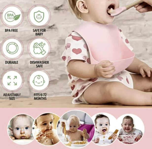 Every little one is a mess creator at mealtime. Our silicone bibs has a wider and deeper opening than other brands to effectively catch any stray food and liquids that baby drops. These keep your baby's cute outfits clean and make meal time so much easier! With a large capacity catcher pocket which can catches food out of baby's mouth,does not spill out.That is a good helper for babies.